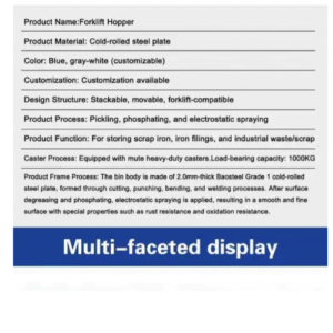 Upgrade your material-handling efficiency with our heavy-duty 1500L Self-Dumping Forklift Hopper, engineered for fast, safe, and reliable waste disposal in industrial environments. Built from premium materials and designed for long-term durability, this hopper is ideal for warehouses, workshops, factories, construction sites, and recycling operations.