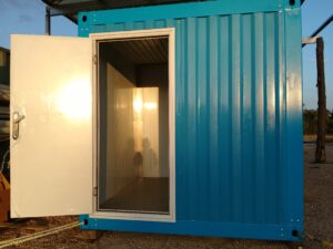 Got it to convert into a takeaway coffee kiosk. The hatch is perfect. Everything came ready to install my machines. Easy to clean and weather-resistant. We painted our logo right over the unit — still looks sharp!