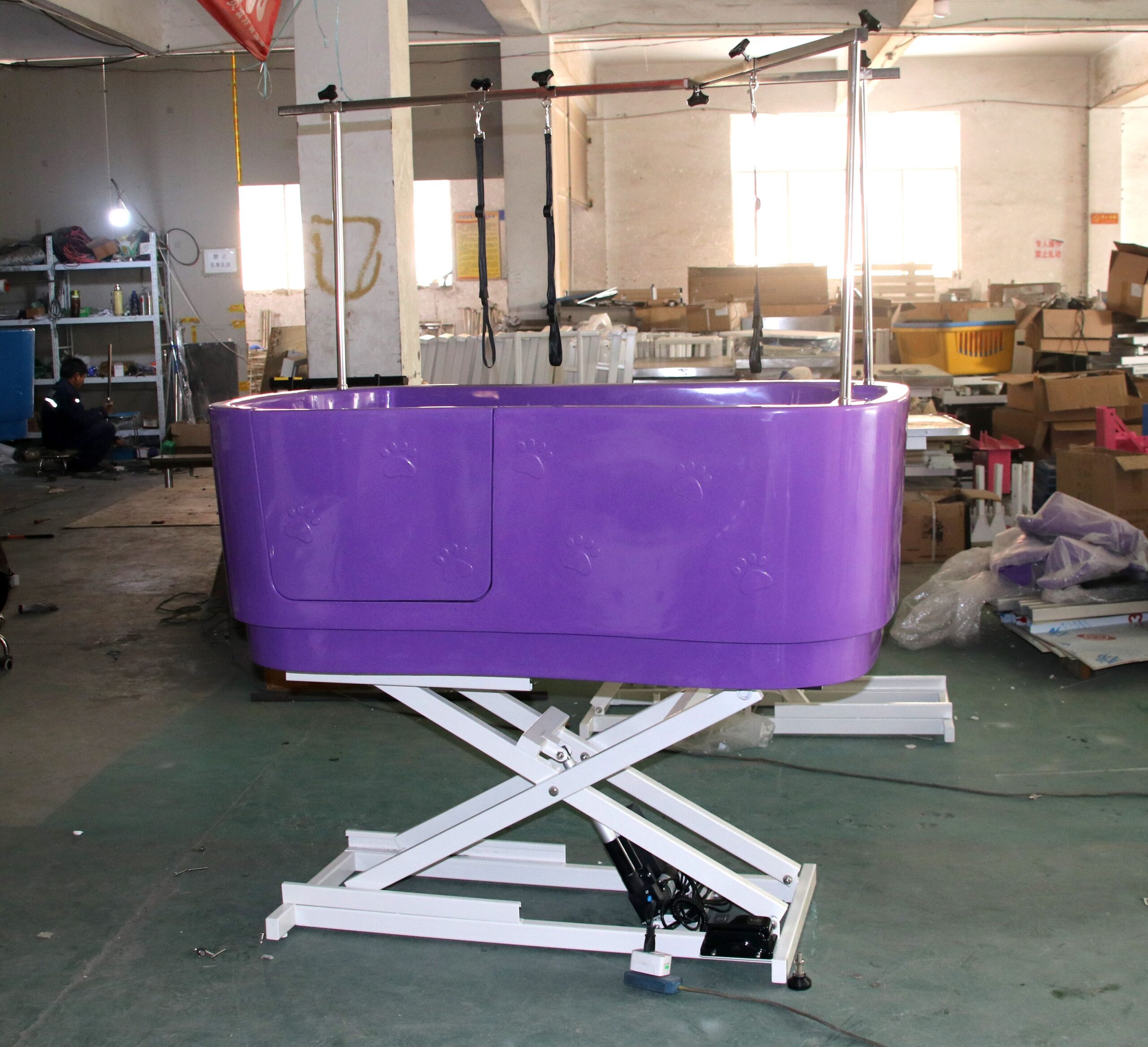 Embossed dog paw-shaped patterns on the tub floor prevent slipping during baths, ensuring pet safety.