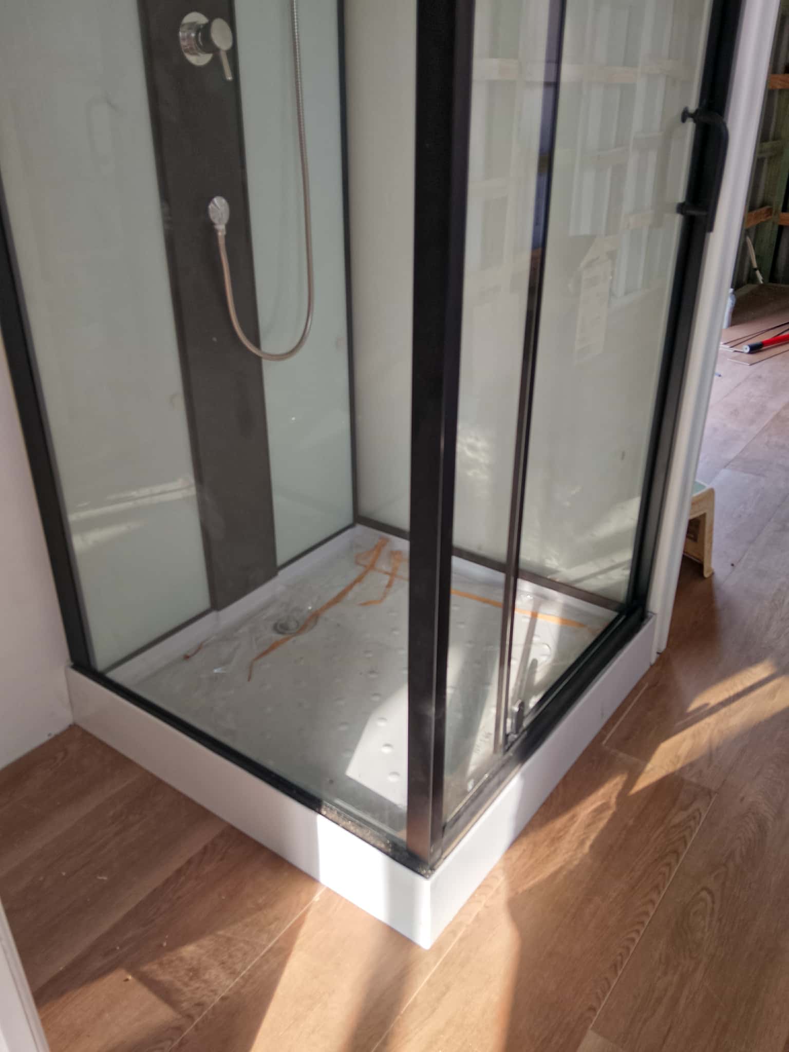 Full Kit Included – Overhead shower, handheld shower head, hot & cold water taps, shower hose, and all fittings. All Walls, Floor Base / Roof